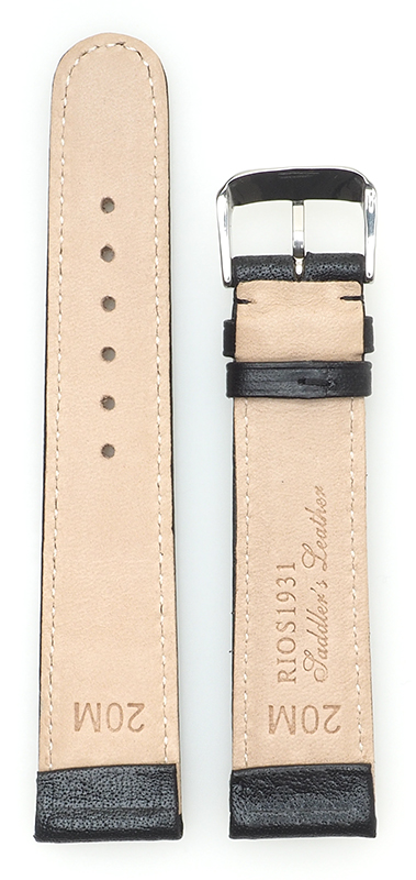 Leicht bombiertes Uhrenarmband, echt Sattelleder, Naht Ton in Ton. Spangenband (Open End) für schnelles und einfaches Wechseln. Der Federsteg muss nicht ausgebaut werden