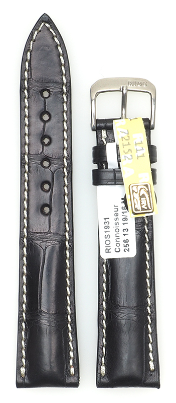 Kräftig bombiertes Uhrenarmband, Alligator Full Cut matt. Widerstandsfähig gegen Schweiß durch Futter mit Kautschukgriff. Das Uhrenarmband ist in der hochwertigen High End-Variante "art manuel" gefertigt und handgenäht.