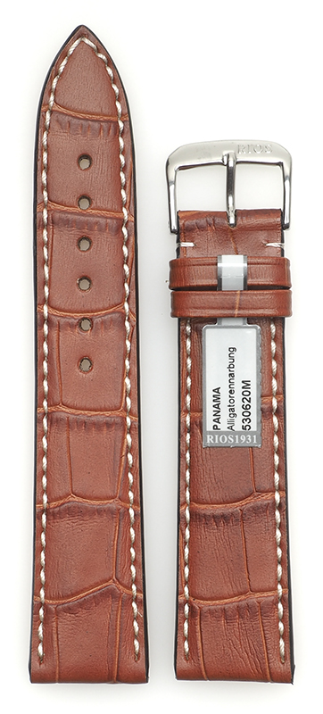 BeschreibungHerstellerBewertungen Beschreibung Leicht bombiertes Uhrenarmband, Alligatorennarbung auf echt Rindsleder geprägt, matt, "Art Manuel", Kontrastnaht beige, Schließe Edelstahl FARBE 06 Cognac BAND- UND SCHLIESSENBREITE 20/18 mm BANDLÄNGE M = Herrenlänge: Lochteil 114 mm, Schließenteil 82 mm, Gesamtlänge 196 mm BANDSTÄRKE 3,5 mm auf 2,7 mm verlaufend SCHLIESSE Edelstahl - vergoldete Schließe auf Wunsch Lieferfrist: ca. 7 Tage Hersteller Oswald Riemer Uhrenarmbandfabrik GmbHWillibald-Popp Str. 286179 AugsburgDeutschlandE-Mail: info@rios1931.de Bewertungen Geben Sie die erste Bewertung ab Es liegen keine Bewertungen vor