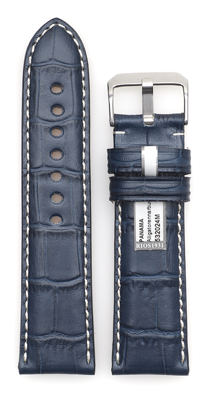 BeschreibungHerstellerBewertungen Beschreibung Leicht bombiertes Uhrenarmband, Alligatorennarbung auf echt Rindsleder geprägt, matt, "Art Manuel", Kontrastnaht beige, Schließe Edelstahl FARBE 20 Marineblau BAND- UND SCHLIESSENBREITE 24/22 mm BANDLÄNGE M = Herrenlänge: Lochteil 114 mm, Schließenteil 82 mm, Gesamtlänge 196 mm BANDSTÄRKE 3,5 mm auf 2,7 mm verlaufend SCHLIESSE Breitdornschließe Edelstahl - vergoldete Schließe auf Wunsch Lieferfrist: ca. 7 Tage Hersteller Oswald Riemer Uhrenarmbandfabrik GmbHWillibald-Popp Str. 286179 AugsburgDeutschlandE-Mail: info@rios1931.de Bewertungen Geben Sie die erste Bewertung ab Es liegen keine Bewertungen vor